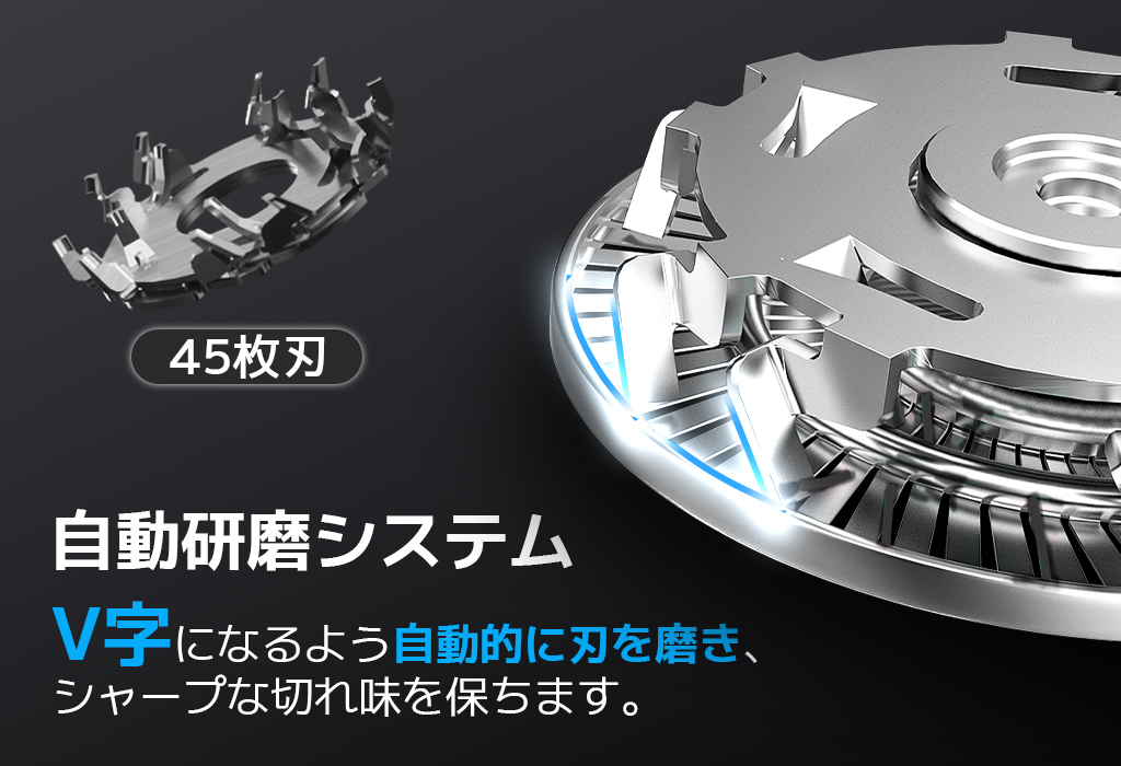 往復式の最大の特徴は、肌面に密着しやすい構造です。薄いフォイル(網刃)が肌にぴったりと吸い付き、短いヒゲも根元からしっかりキャッチ。仕上がりのツルツル感を求める方に人気があります。