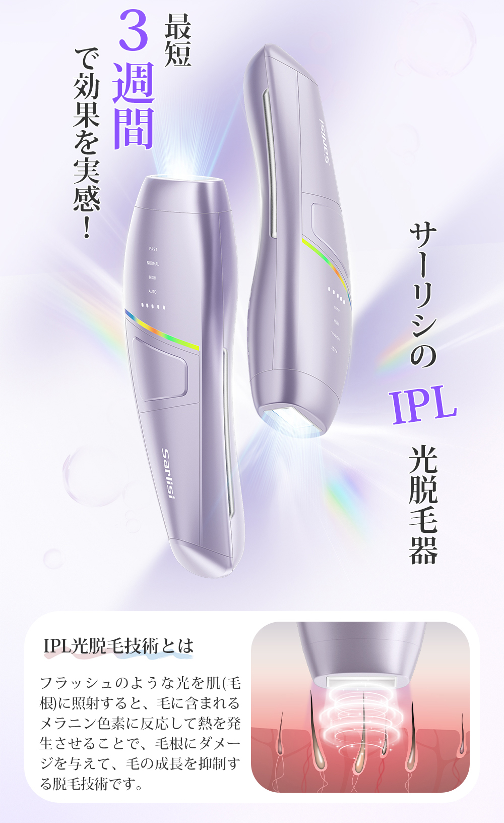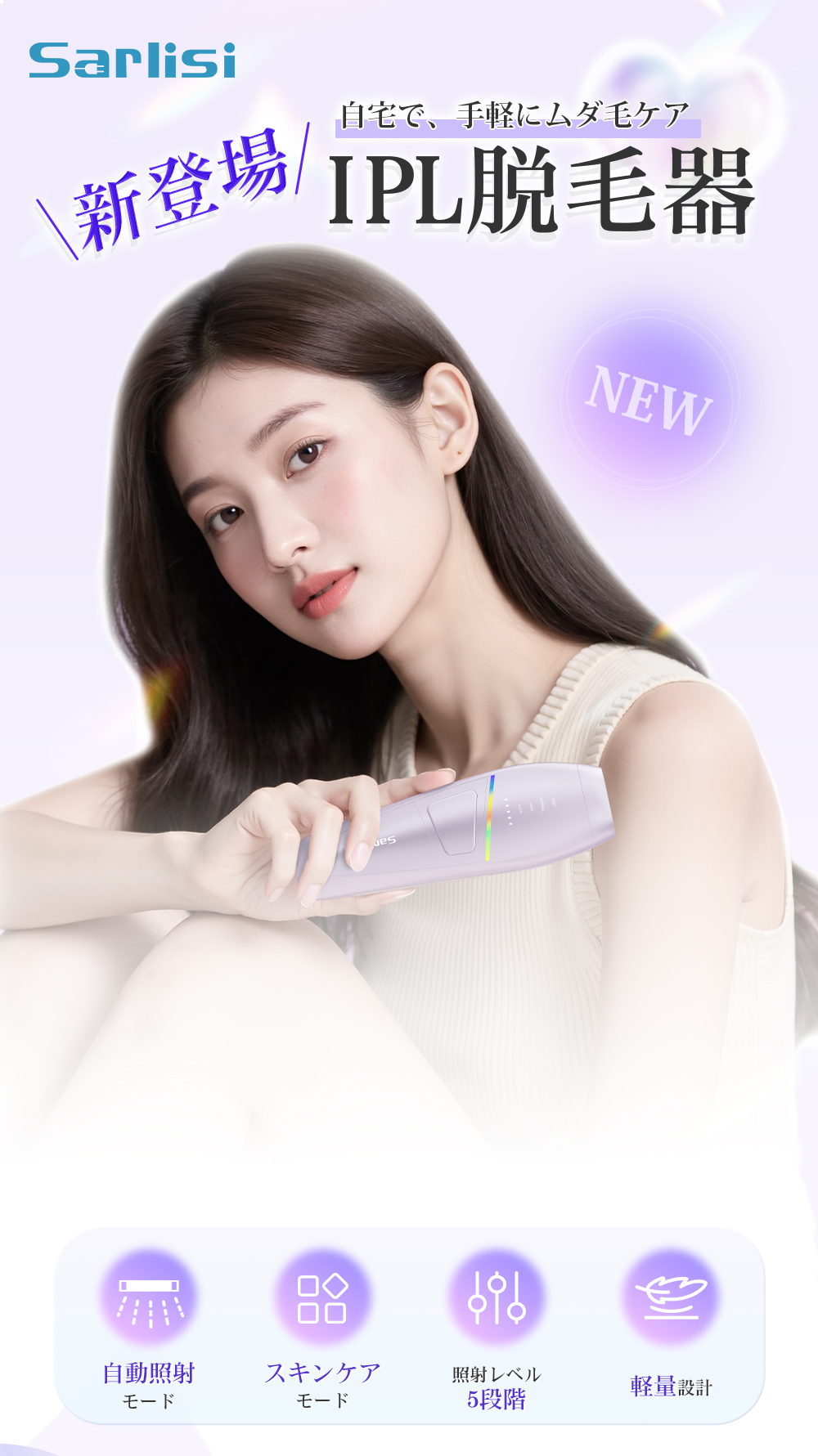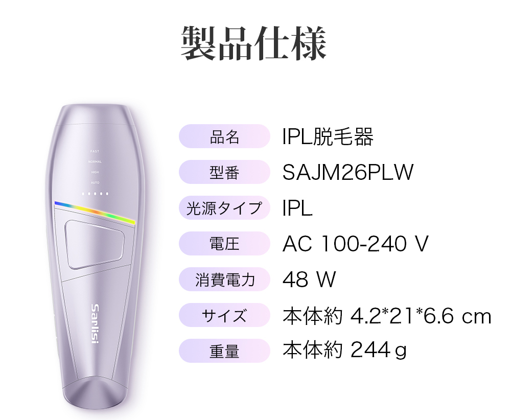 【Sarlisi最新作】IPL脱毛器 SAJM26PLW|サロン級ケアを自宅で体験